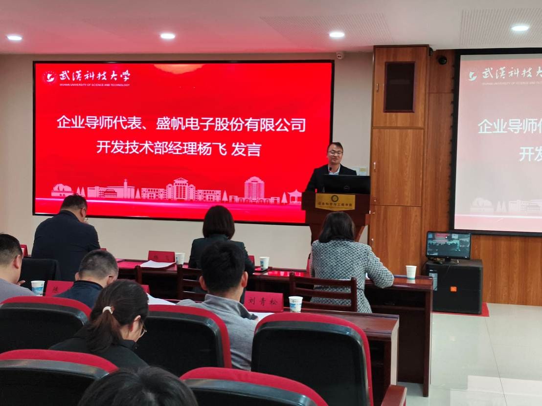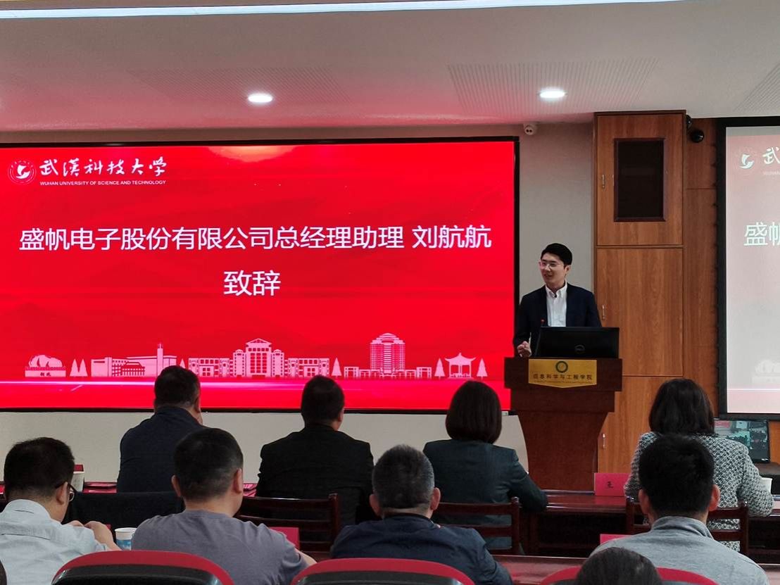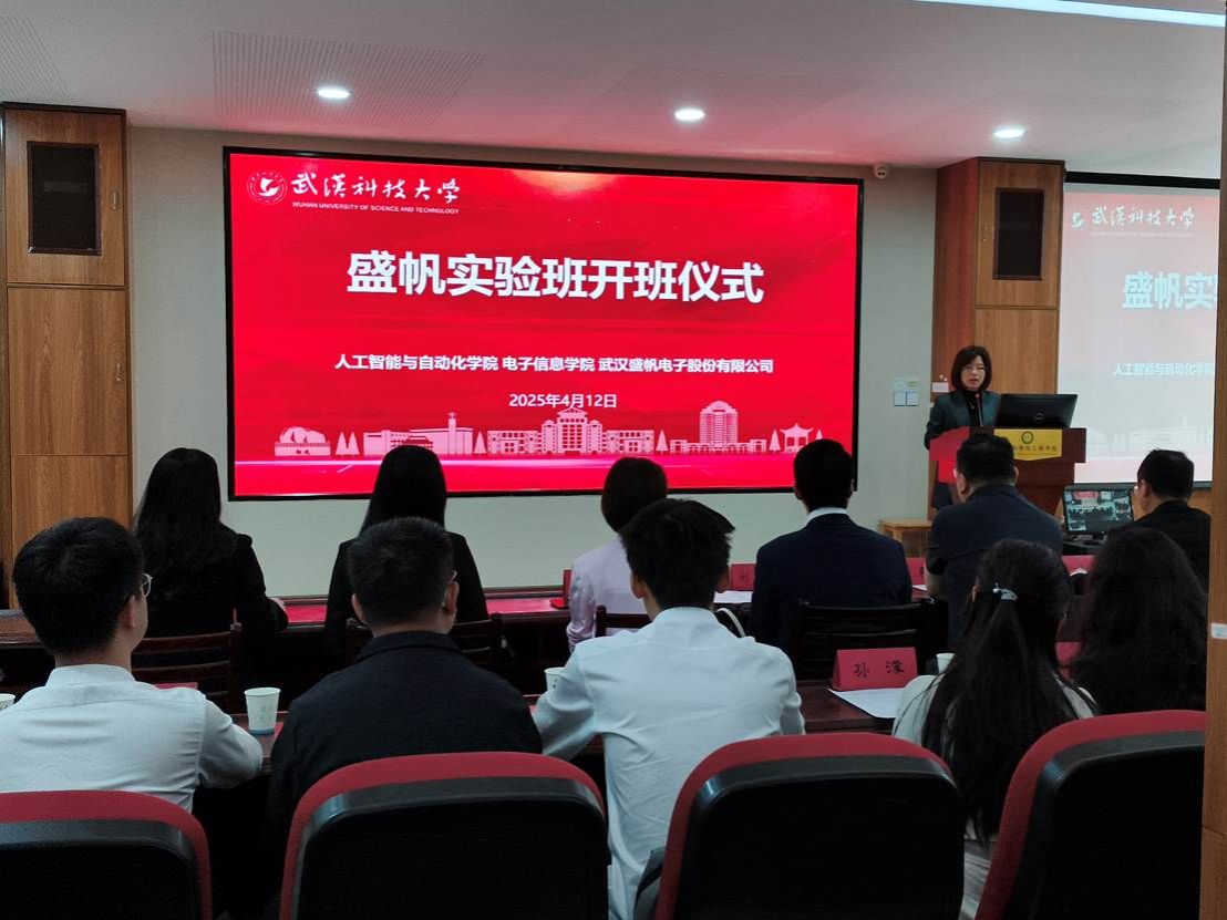 本网讯(通讯员潘鑫 王圣博)为深化产教融合、推动人才培养模式改革,电子信息学院、人工智能与自动化学院近日联合盛帆电子股份有限公司开办“盛帆实验班”,4月12日,我校青山校区教十楼401报告厅举行“盛帆实验班”开班仪式。盛帆电子股份有限公司总经理助理刘航航、人力资源总监张紫月、人力资源经理熊盛楠等企业代表,我校本科生院副院长袁龙、电子信息学院党委书记王婧、人工智能与自动化学院党委书记冒颖等领导出席仪式。实验班全体学员参与了本次仪式。